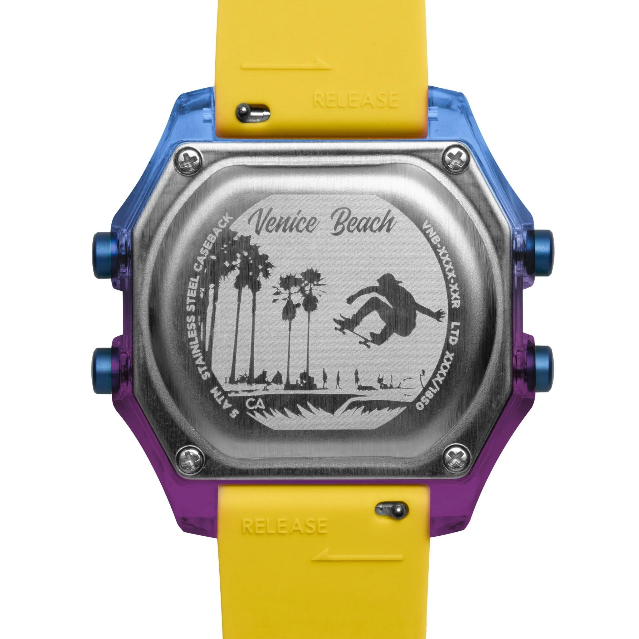Southern California's Venice Beach is home to a two mile long beachfront boardwalk, quirky street performers, and a skatepark built right on the sand. Our Venice Beach digital collection brings the soul of the boardwalk to your wrist, with colorful accents and a caseback etching of the iconic skatepark.