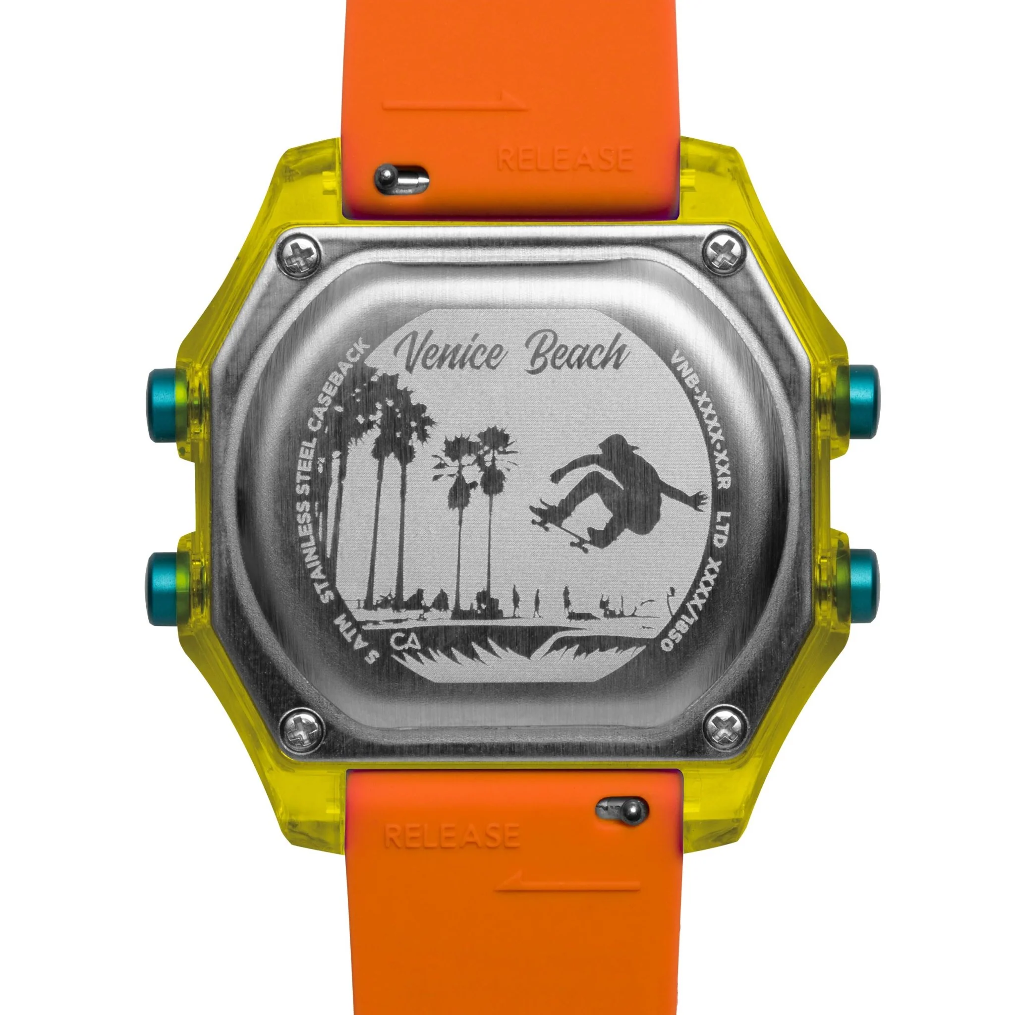 Southern California's Venice Beach is home to a two mile long beachfront boardwalk, quirky street performers, and a skatepark built right on the sand. Our Venice Beach digital collection brings the soul of the boardwalk to your wrist, with colorful accents and a caseback etching of the iconic skatepark.
