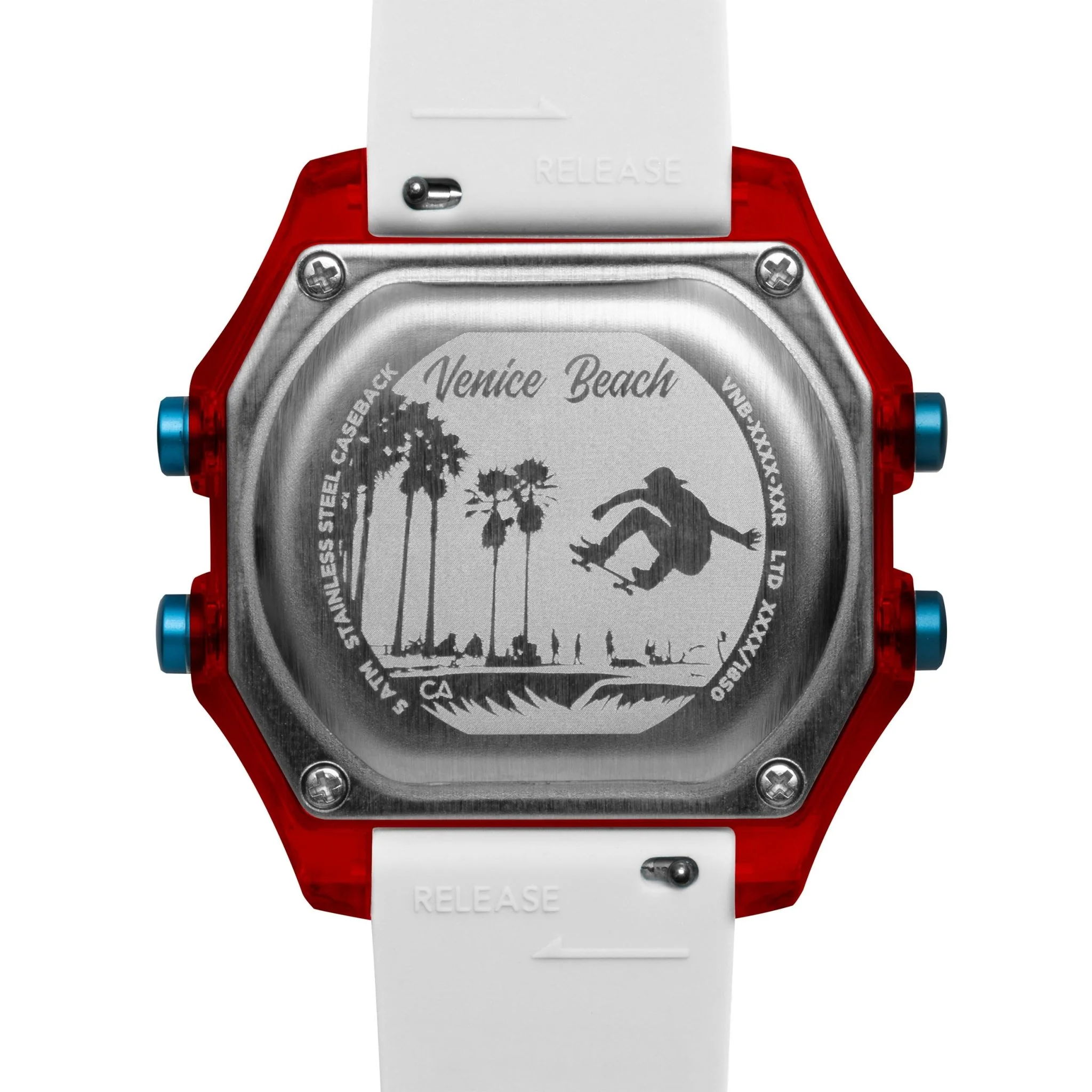 Southern California's Venice Beach is home to a two mile long beachfront boardwalk, quirky street performers, and a skatepark built right on the sand. Our Venice Beach digital collection brings the soul of the boardwalk to your wrist, with colorful accents and a caseback etching of the iconic skatepark.