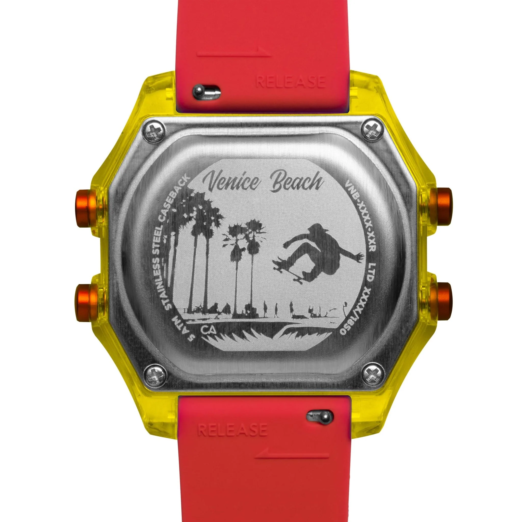 Southern California's Venice Beach is home to a two mile long beachfront boardwalk, quirky street performers, and a skatepark built right on the sand. Our Venice Beach digital collection brings the soul of the boardwalk to your wrist, with colorful accents and a caseback etching of the iconic skatepark.