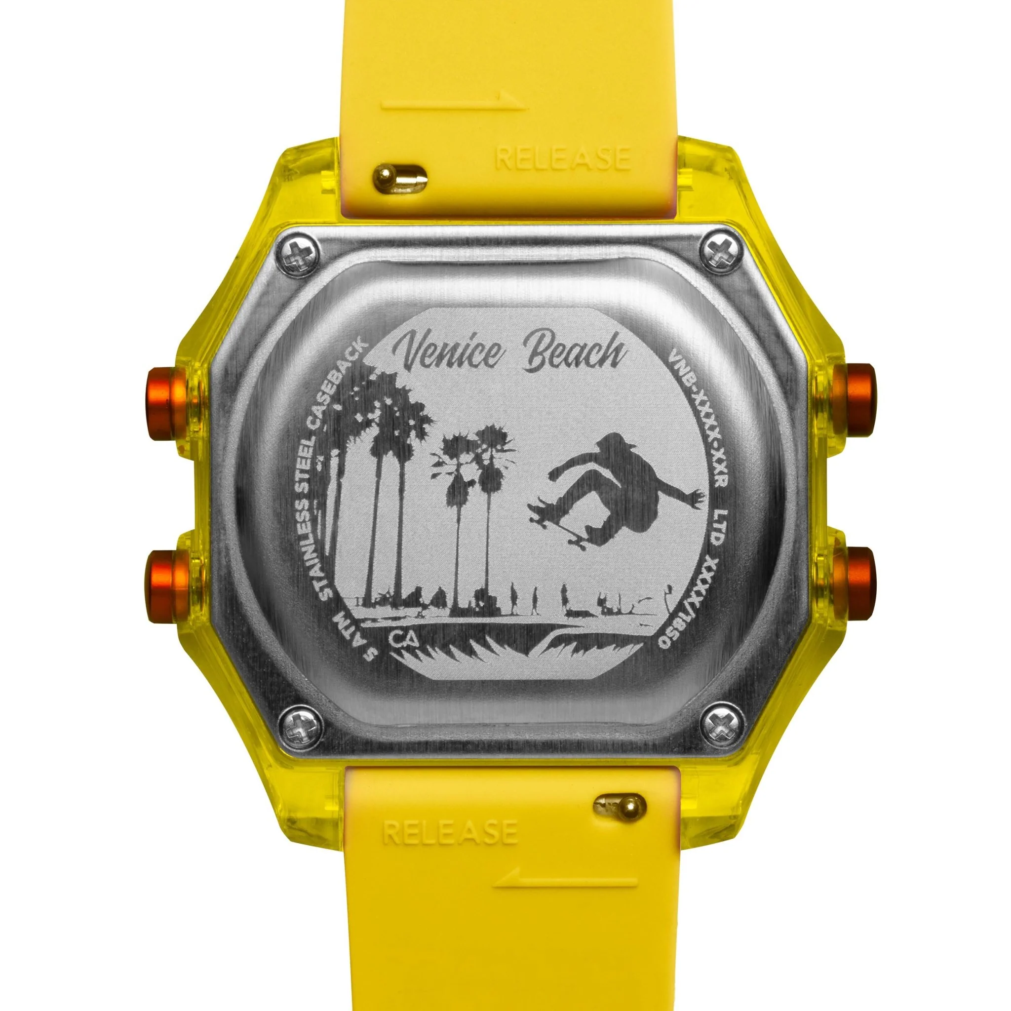 Southern California's Venice Beach is home to a two mile long beachfront boardwalk, quirky street performers, and a skatepark built right on the sand. Our Venice Beach digital collection brings the soul of the boardwalk to your wrist, with colorful accents and a caseback etching of the iconic skatepark.