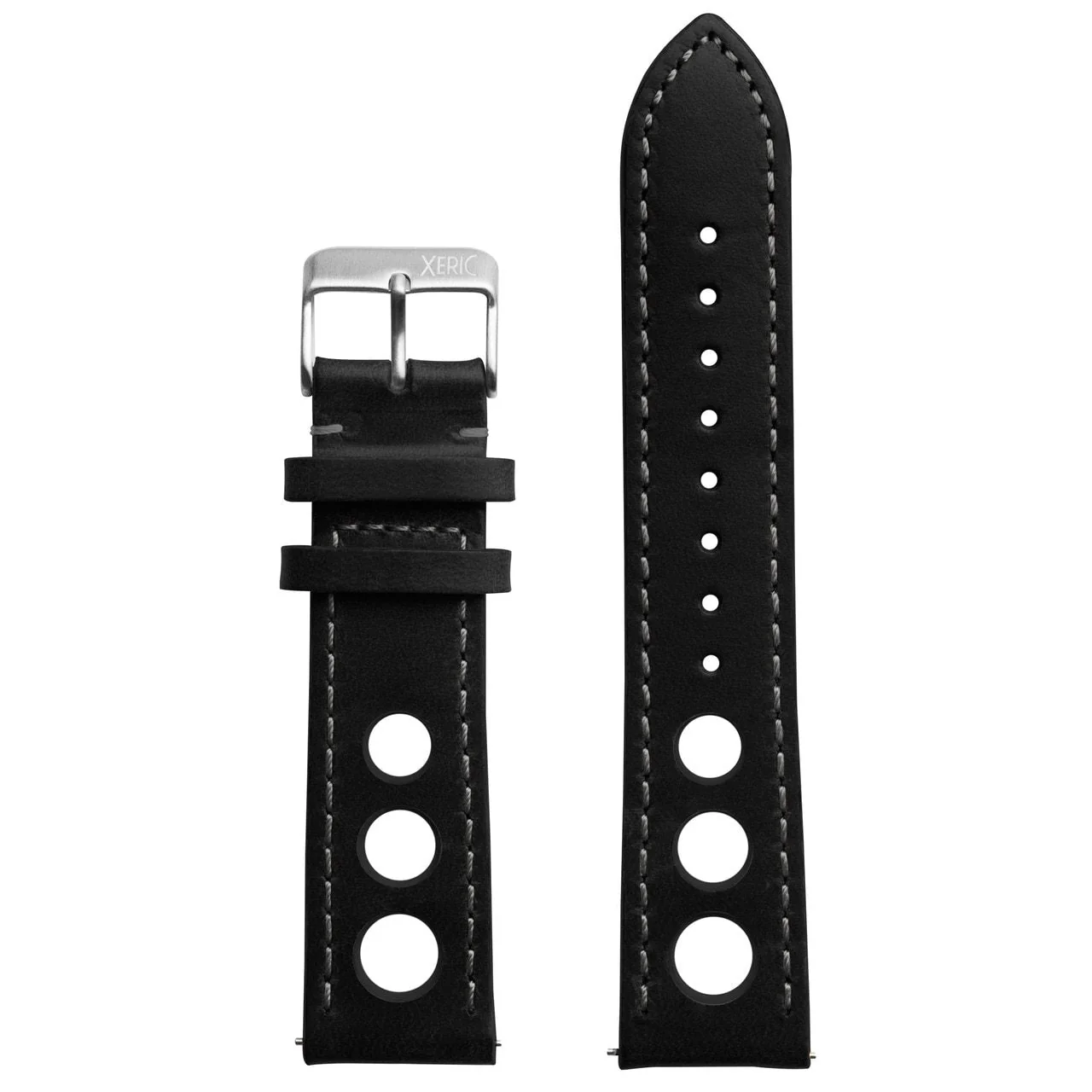 Xeric 20mm Horween Leather Rally Black Charcoal Strap Silver Buckle