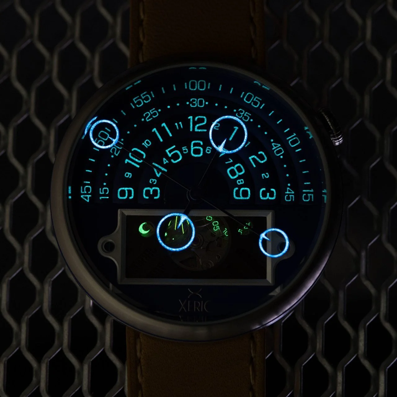 This colorway of the Halograph II Automatic has luminous hands and dials for late night adventures. It works like a light storage battery, where light charges the battery and afterward, the light is continuously emitted.